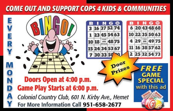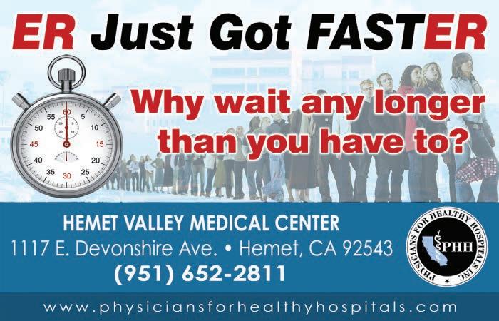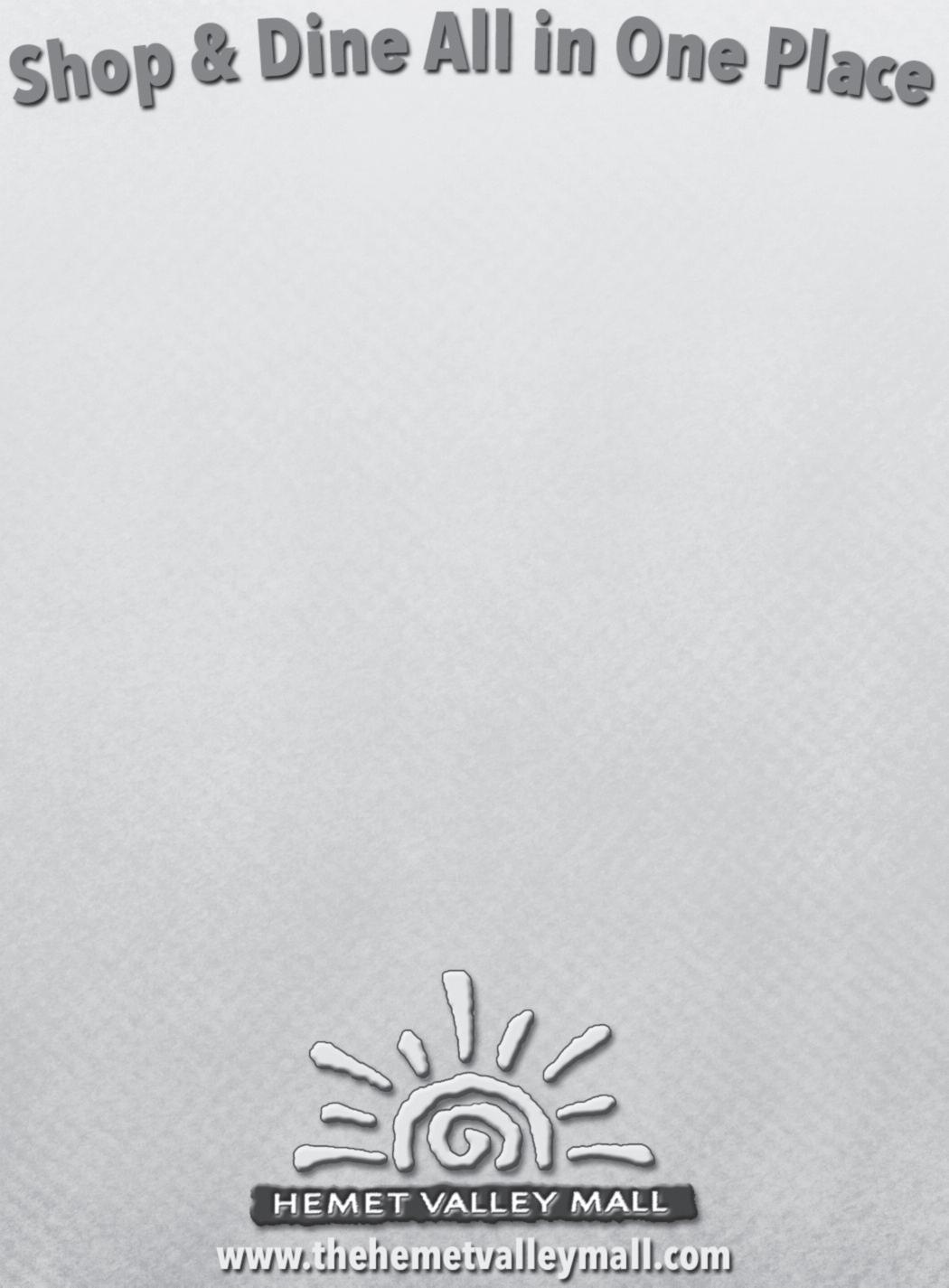City of Hemet, 951-765-3712; City of San Jacinto, 951-654-7337; and Valley-Wide, 951-654-1505 for information on their area’s specific parks.