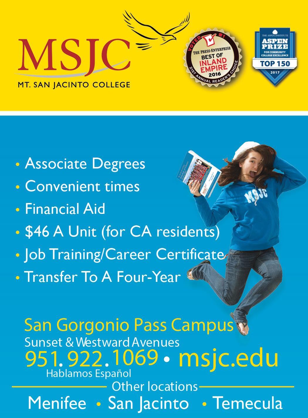Mt. San Jacinto College 1499 N. State St. 951-487-6752 San Jacinto, CA 92583 F: 951-654-9712 www.msjc.edu