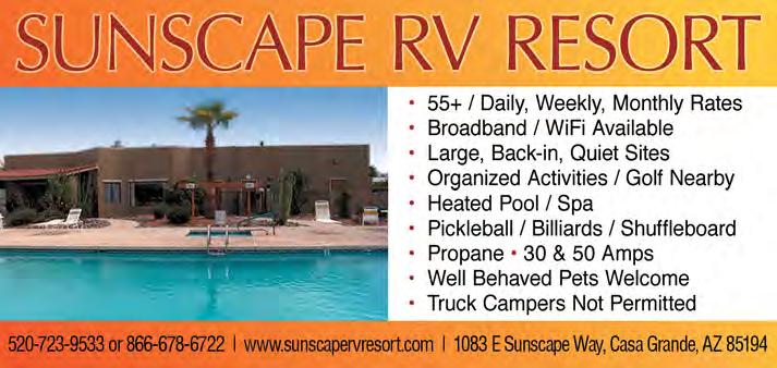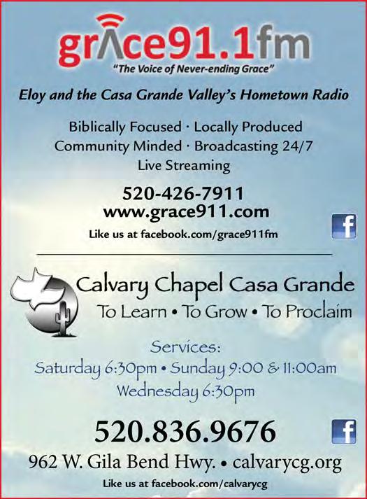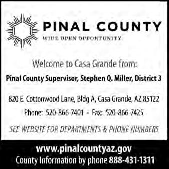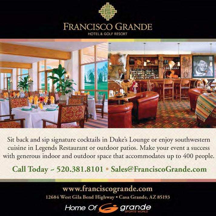 This information was correct at time of press. For time, dates and additional information on the events listed on this calendar, please call the telephone numbers shown on each event listing. For calendar information updated by-the-month, please call the Greater Casa Grande Chamber of Commerce at 520-836-2125 or 800-916-1515, or review the events calendar on the Chamber website, www.casagrandechamber.org.