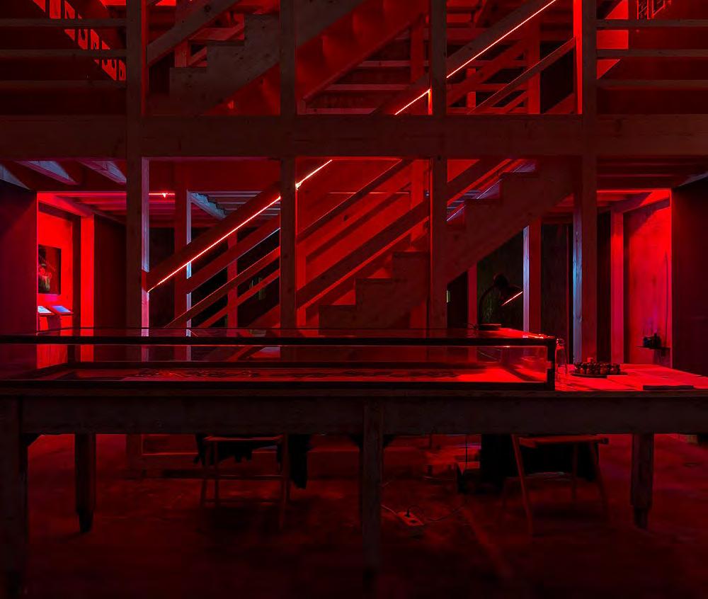 Fig 1: The 2018 Cruising Pavilion in Venice was lit with dim lights, scented with eucalyptus and poppers, and drew upon the gay underground spaces of Berlin and New York to recreate the environments that commonly accompany cruising.