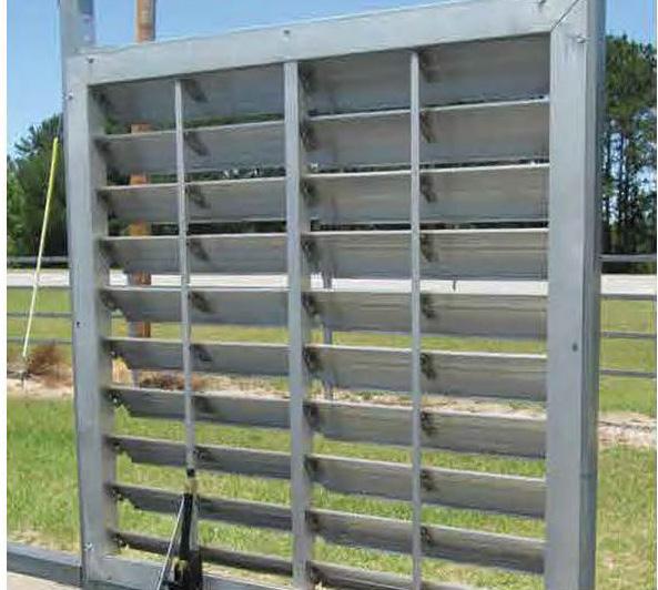 Our Inlet Shutters are made of mill finish extruded aluminum with aluminum pivot rods and nylon bearing and counter balanced blades to ensure smooth operation.