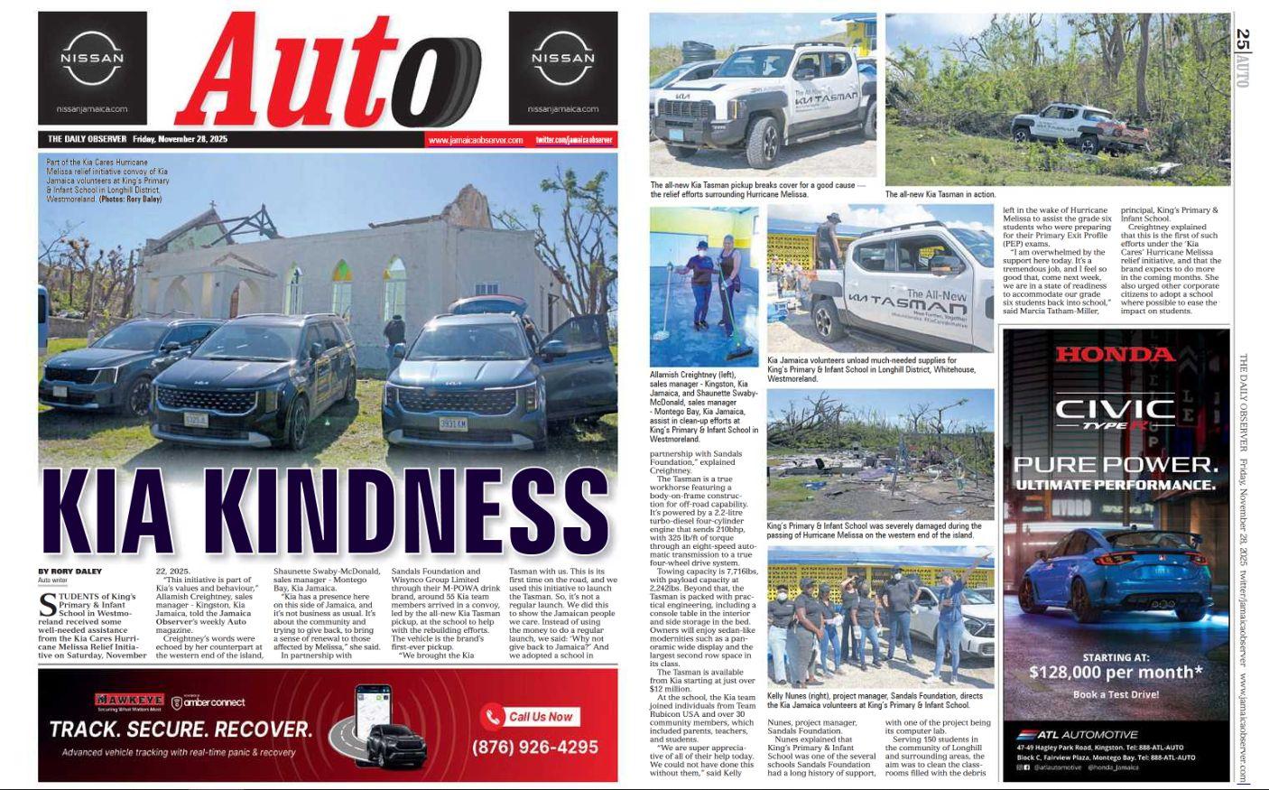 ● The initiative was featured on the front page of the Observer’s weekly Auto magazine on Friday, November 28, 2025, and in the Gleaner’s Automotives section on Sunday, December 14, 2025.