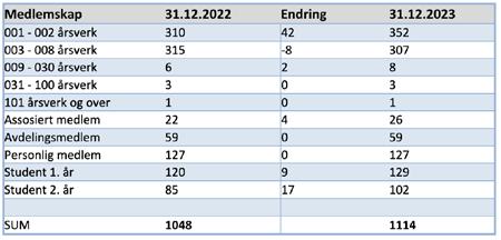 Reduseringen i kategorien 3-8 årsverk skyldes nok i all hovedsak justering ned til den laveste kategorien. Vi ser også økning, eller status quo, i de øvrige medlemskategoriene.