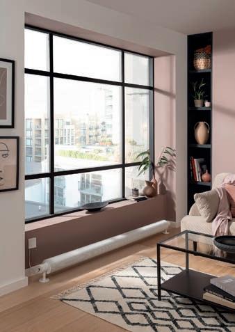 Comprised of 122mm steel fins, the Halo Electric is available in three widths – 1,015mm, 1,515mm and 2,015mm – to fit a variety of spaces. Its slim profile makes it ideal for spaces with large expanses of glass or beneath low windowsills where wall height is restricted. Alternatively, it can be installed vertically, making it perfect for narrow wall spaces or tight corners. Designed to be elegant, the Halo Electric is a versatile heating solution.
