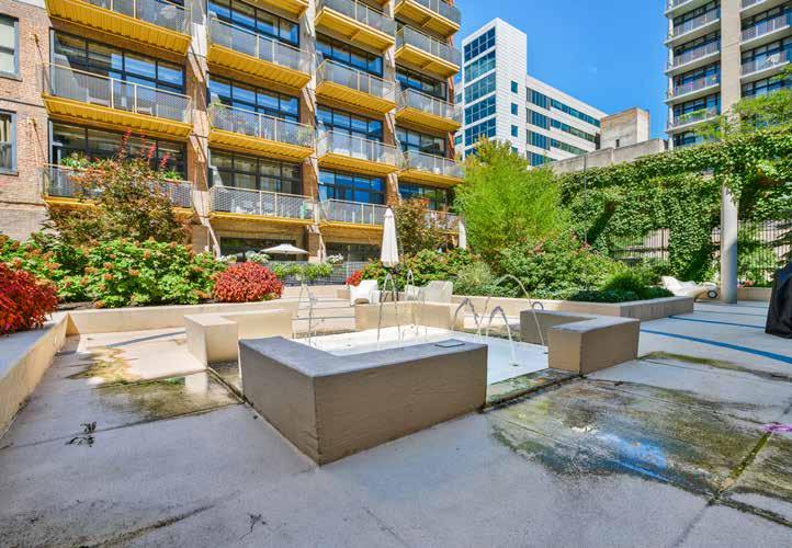 ensuite bathroom with a shower and soaking tub, and a generously sized walk-in closet. Side-by-side Whirlpool washer and dryer can also be found in the unit. This building offers the most beautifully landscaped courtyard with a central fountain, tables, and grills. Walking distance to everything