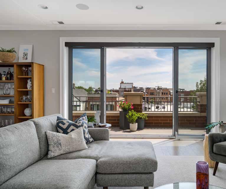 This exquisite better-than-new-construction Penthouse Unit is situated on a double lot, with 50 feet in width, and all-brick construction! Take in the amazing views of the city skyline from the comfort of your own private rooftop deck, or relax on the spacious balcony, both equipped with Trex decking, outdoor speakers, water spigot and BBQ gas hookups. Both areas provide tremendous space for entertaining guests in style and comfort. This home is designed for the ultimate indoor/outdoor experience, with European tilt-and-turn doors and windows that allow a seamless indoor/outdoor feel. Inside, enjoy bright southern exposure that floods the home with natural light, and experience high-end finishes throughout, from the tile and light fixtures to the hardwood floors. Entertain guests in the large family room with five built-in speakers and Hunter Douglas designer motorized blinds or cook to your heart’s delight in the chic kitchen with high-end Thermador appliances, custom Amish cabinetry and quartz countertops. The spacious primary bedroom is equipped with a walk-in closet and an ensuite bathroom with dual sinks, a separate tub, heated floors, and more high-end bathroom fixtures. Hunter Douglas designer blinds in all bedrooms. The custom mirrors in both bathrooms and dining room add a touch of sophistication, along with the custom closets that provide generous storage space. Conveniently located laundry room with plenty of extra storage and a full-size side-byside washer and dryer. The poured concrete slabs between all floors ensure that each space is quiet and private! This home features an attached 2 car garage with extra storage space. Close proximity to some of Chicago’s best dining, shopping, and entertainment options, and is steps away from Chi Che Wang Park. Don’t miss your chance to own this luxurious home with designer details at every turn and experience the sophisticated lifestyle that this beautiful home offers!