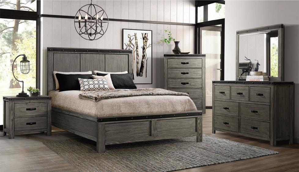 The Wade bedroom collection blends style and function with a little edge. Bring contemporary design to your space with the fusion of metal and wood, clean lines and a beautiful gray finish.