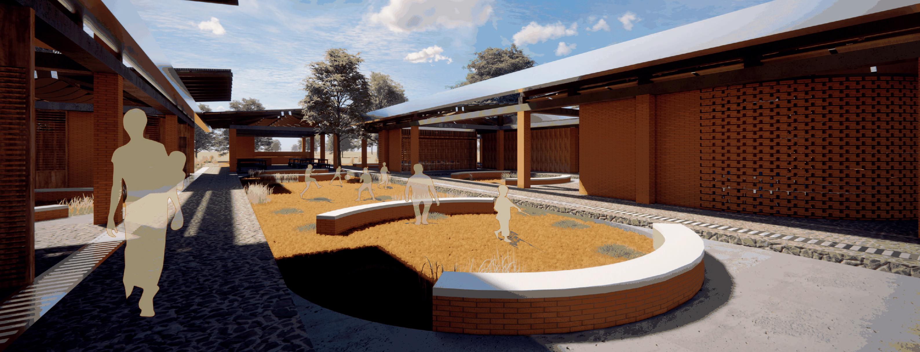 Design, architectural drawings, 3D rendering for a café in the Colombus American School, Rivera, Colombia.