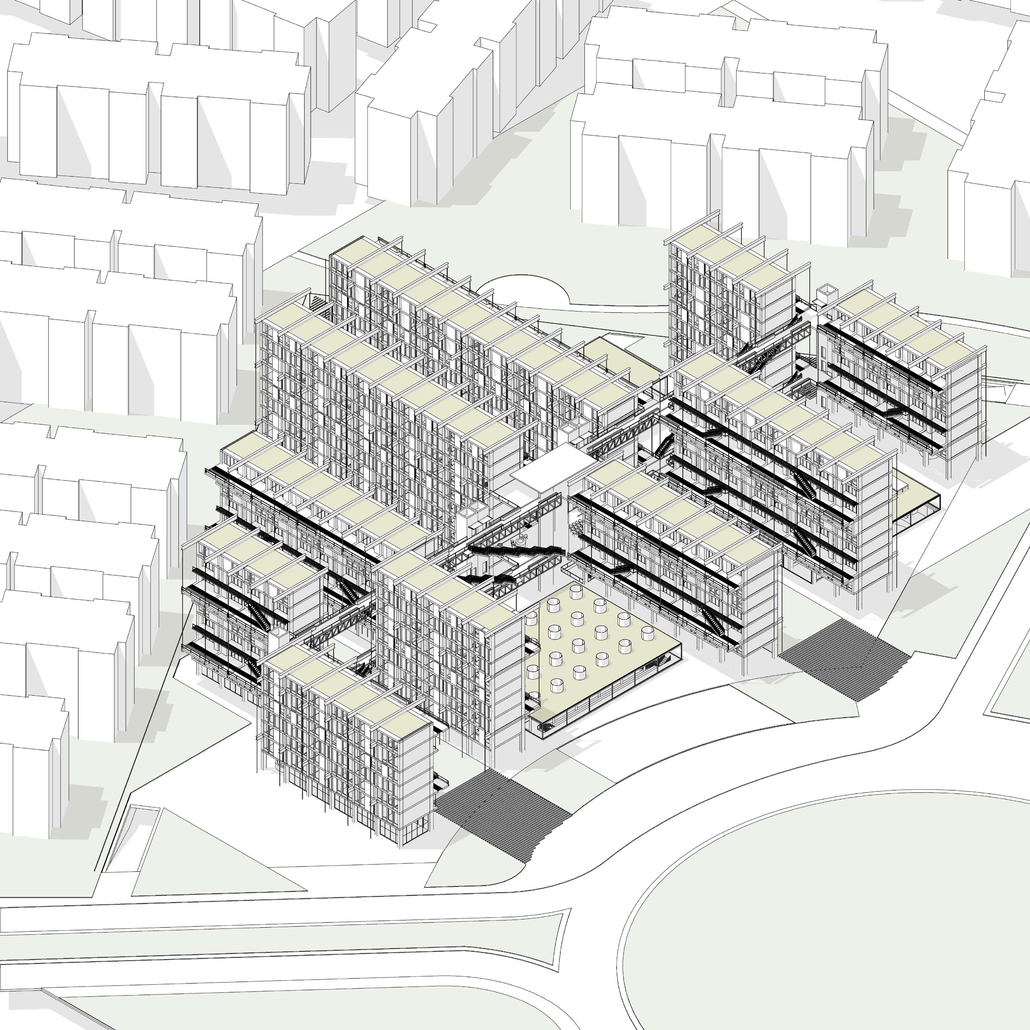 The problem of densification on the periphery of many Latin Americans cities, like Bogotá, has generated a housing model through zoning that has not responded adequately to the city. The endless fence has generated a break between the street and the block, leaving residual spaces that are difficult to appropriate. In this way, the project re-thinks this city model through the porosity of the block and the activity within it.