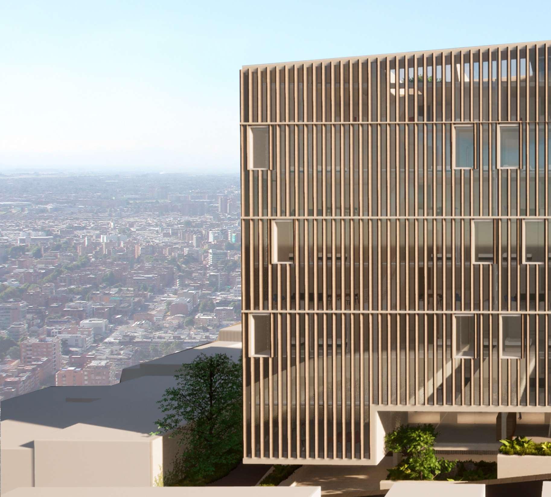 A three-dimensional grid is generated through the structure to which self-supporting elements are attached that build up the project’s dependencies. The effect created by the empty and full of this grid generates the spatial experience of architectural foliage inside the building, as a tree. With the above, a dematerialization is established between the interior and the exterior, which is reinforced with the intention of creating a landscape inside the atriums that, with the help of the technical solutions, the relationship with the weather varies depending on the climatic conditions of the area.