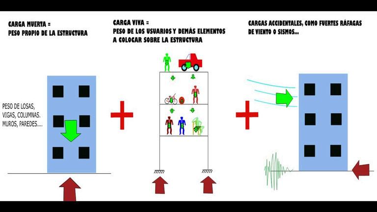 Introducción al concepto de carga. Tipos de cargas: gravitacionales, vivas y ambientales. Transmisión de cargas y las leyes de Newton (implícitas).