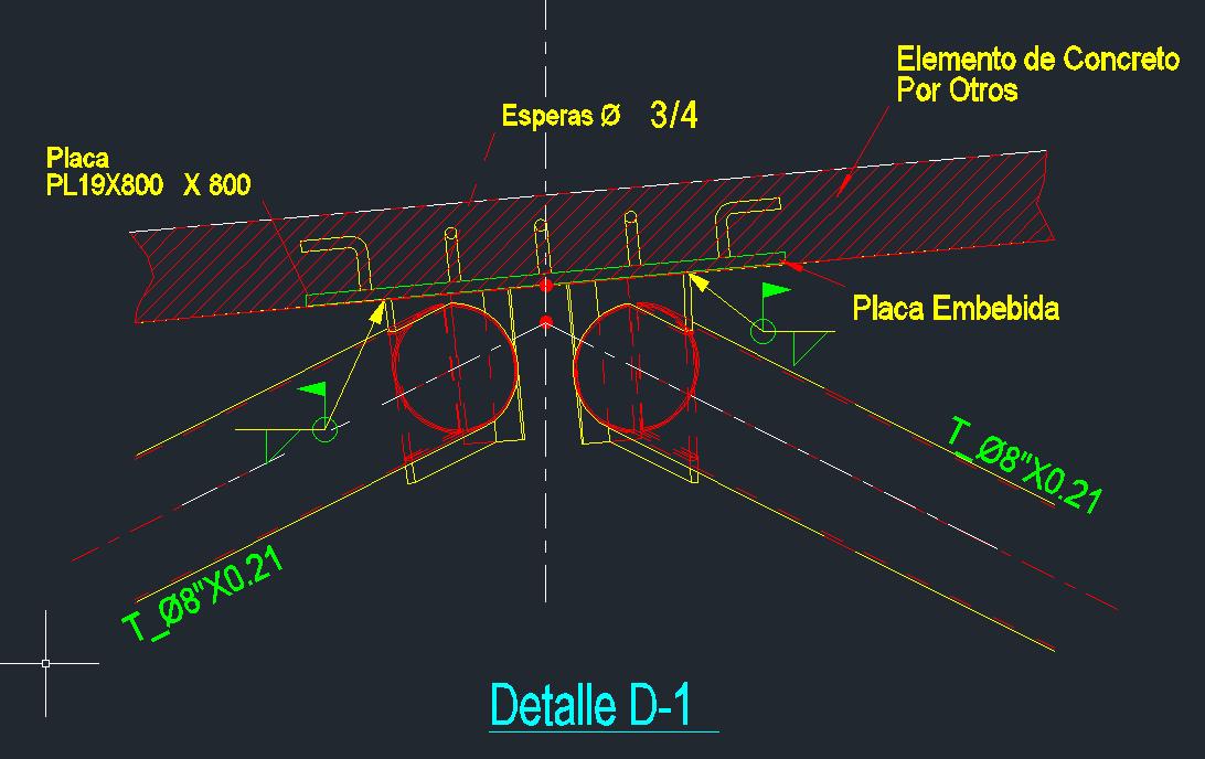 DETALLE DE ANCLAJE DE PLACAS DE ELEMENTOS DE ACERO UNIDOS A ELEMENTOS VERTICALES DE CONCRETO REFORZADO.