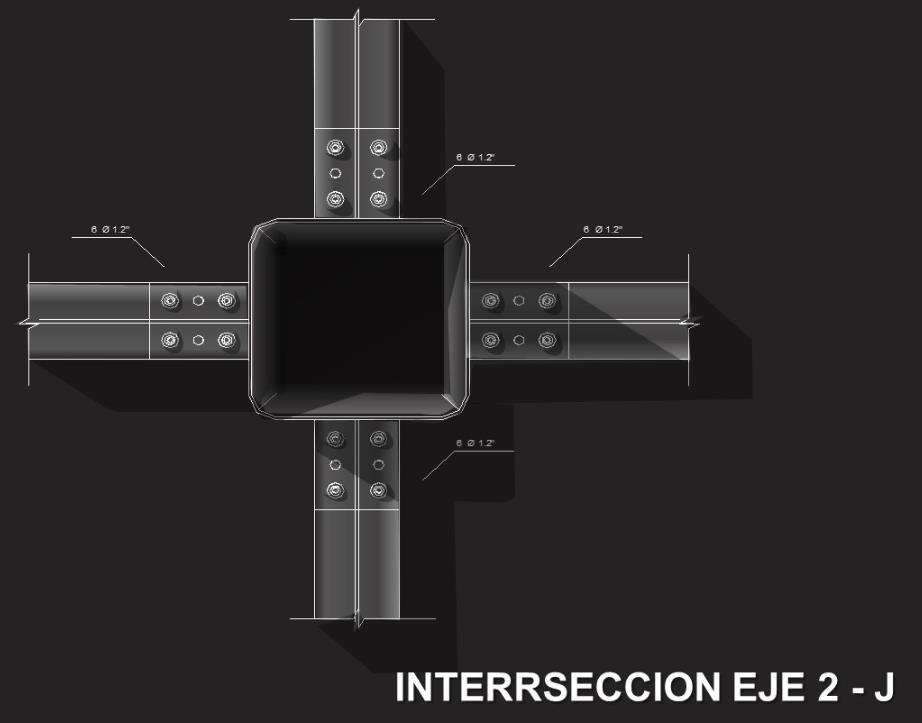 DETALLE DE ANCLAJE DE PLACAS DE ELEMENTOS DE ACERO UNIDOS ENTRE ELLOS.