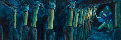 I think that Dad had a unique style which captured the harsh reality of working down the pit as well as the day-to-day life in the pit villages. His ability to use such a wide variety of mediums to create his art was inspiring. I particularly like his use of blues and greens in his underground scenes and his inclusion of women in many of his images such as waiting for news at the pit gates following pit disasters, gossiping in the streets or knocking up the men for their shifts.