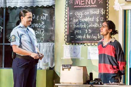 IT IS the middle of the night in the middle of nowhere, somewhere in the Horowhenua. Declan Kopu, just out of prison, visits the local tearooms to ask for help from Isaac, the owner. Declan tells Isaac that he has been staying with a woman called Glenda since his release, but now, because it is Mutuwhenua –the new moon – he has been possessed by a persona called ‘Jason’, and doesn’t know what Jason has done. Isaac is nervous and noncommittal and Declan gets angry. Isaac goes to cook a meal and Declan remembers what his nowdead Koro used to say about Mutuwhenua: The moon dies, and the world is left in total darkness.” Travis, the local police officer, arrives. She reports that someone has destroyed the church, breaking windows and chopping up the pews. She collars Declan for attacking Glenda’s husband earlier in the evening and takes him to the station.