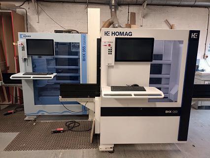 Holzma Optimat HPP 130/32/32 CNC panel saw (2018), Homag Edgeteq S-300 Optimat KDF 450C edgebanding machine (2020), Weeke BHX055 Optimat CNC machining centre (2016), Homag Optimat BHX 050 CNC machining centre (2018), Brandt Optimat KTD720 edgebanding machine (2016), Homag Automation MPH410 Optimat Carcass clamp, Compacta 9 Robopac stretch wrapping unit, Hyundai 25L-7A LPG forklift truck (2011), Yale Eddison GLP060RCT2286 LPG forklift truck, Record Warrior CS1529 pallet lifter (2012), Two Almig Combi air compressors, Comafer Dinamic 70N Briquette Press (2019), Compact & Bale LSM 51-108 cardboard press machine, Blum Minipress P 1x230 automated vertical drill, Quantity of wood stock, Quantity of kitchen fittings, parts, etc.