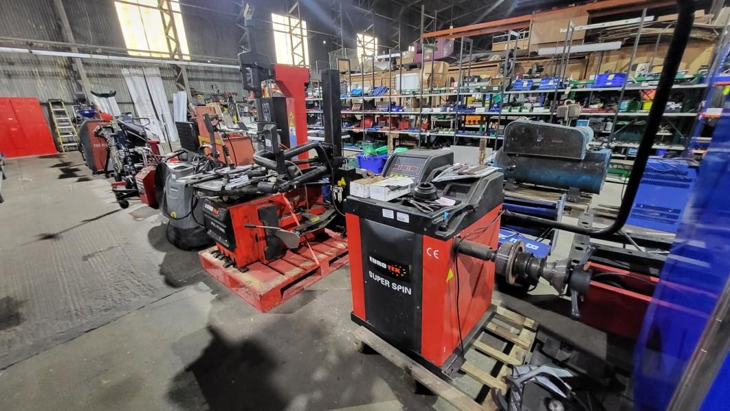Diagnostic tool. Many Snap-On spanners, socket sets, ratchets, and general workshop tools. Snap-On & other A/C charging units. Engine crane, trolley jacks, 30T bearing press, battery chargers, oil drainer, Eurotek Wheel balancer, Eurotek Profit 4000 tyre changer. Parts washer . General garage equipment incl. stores of bulbs, fittings, electrical spares, nuts & bolts, jubilee clips etc.. Many specialist tools kits. Vehicle scissor Lift. 20 Pallets of unused Auto Parts: Brake pads, brake discs, Hub bearing kits, ball joints