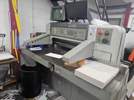 Digital printing and print finishing equipment including: Heidelberg Versafire CP digital printing press, cutting, folding and binding machinery and sundry print finishing equipment; Woodworking machinery and equipment to include: SCM model Compact 22 4 sided planer moulder, chisel morticers, Mesa model GT600 chain morticer, dust extraction systems, wide belt sander, assorted machine tooling, air compressors, various saws and planers; Storage racks;