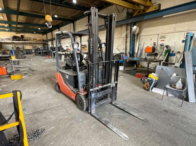 Plant & Machinery: To include Toyota Traigo 48 20 electric 3-wheel forklift 2019, modular podium steps, boltless slotted steel medium duty Dexion racking, aluminium ladders, foldable meeting chairs, steel lockable site safes, pallet trucks, scaffold towers, mobile metal cages, mobile flight cases, Mobile skates etc.