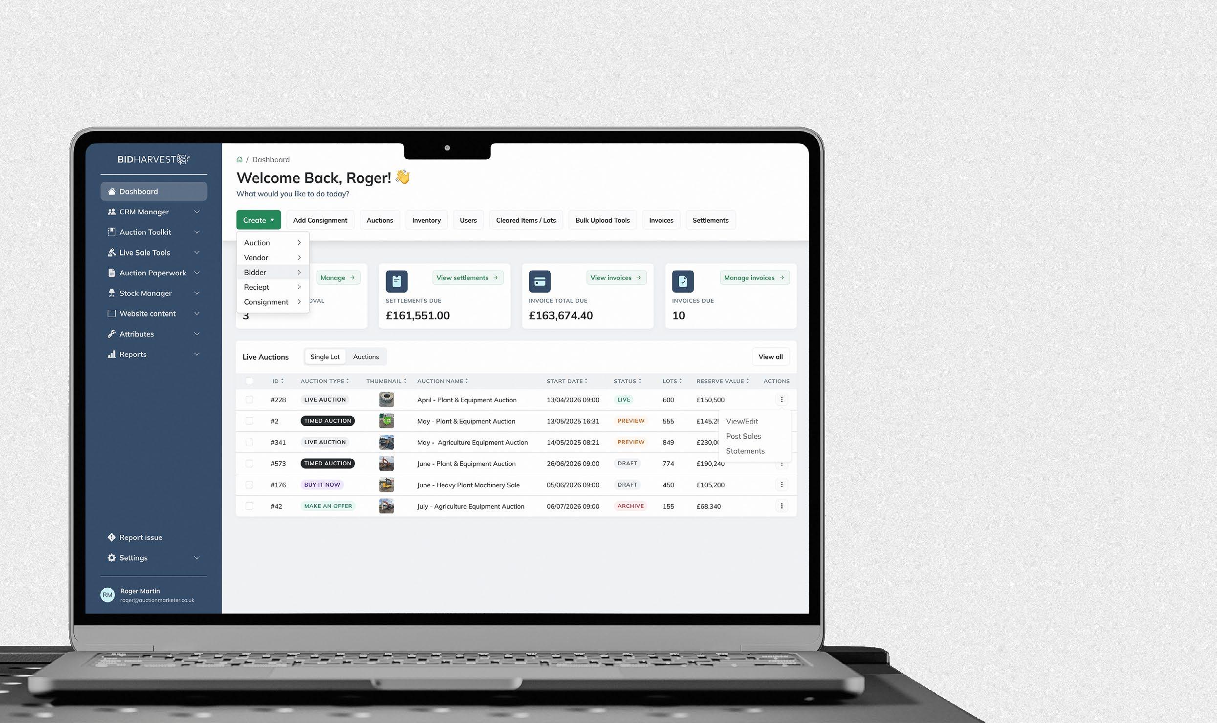 Imagine consignments flowing straight into inventory ready to catalogue. Catalogue feeding your website automatically in real time. Bidding outcomes linked into invoicing and settlement. A single view of every bidder and vendor. One place to run the operation, without patching tools together to make it work.