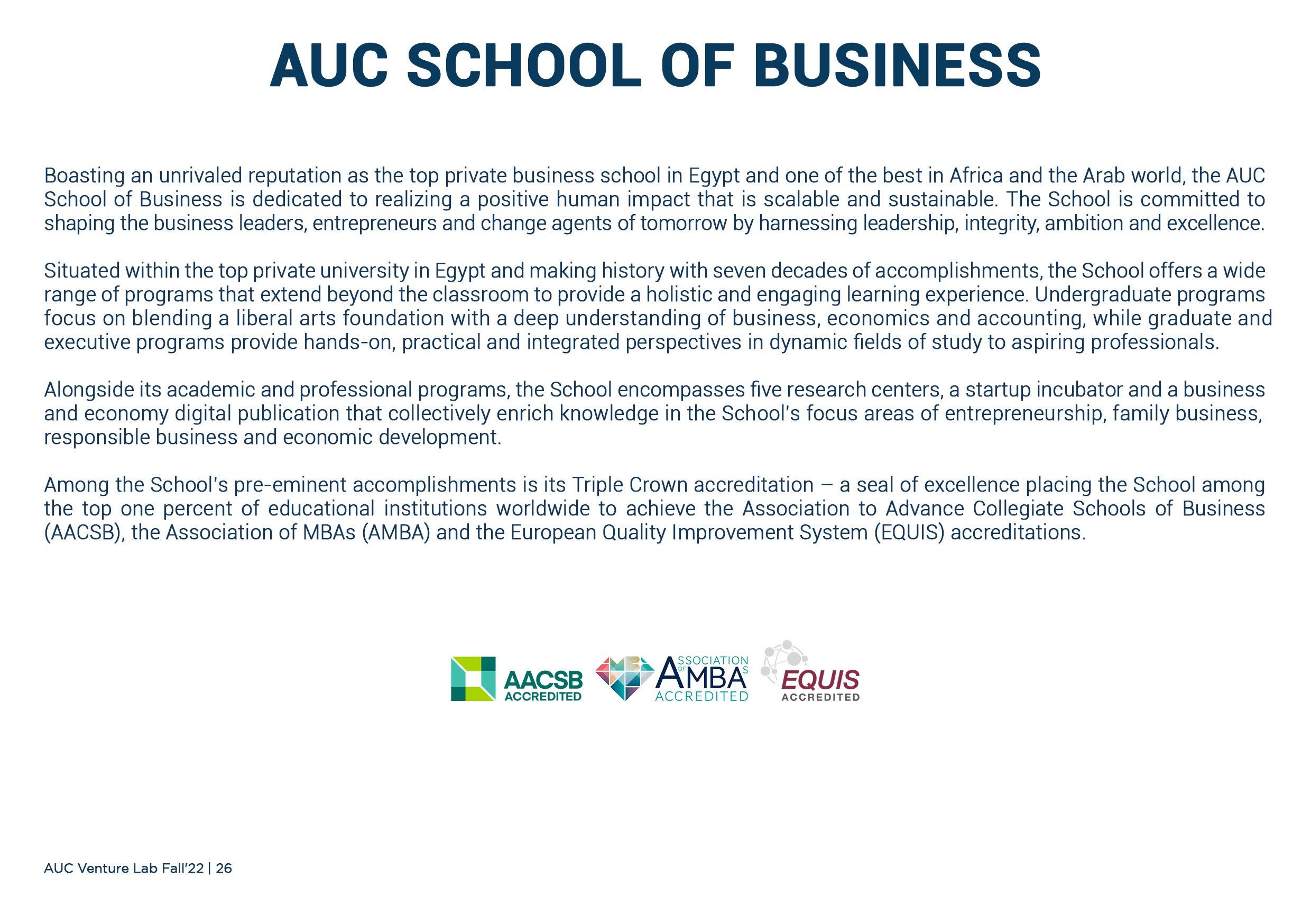 The AUC Venture Lab Fintech Accelerator Fall'22 Cycle is powered by CIB Egypt and in partnership with Mastercard.
