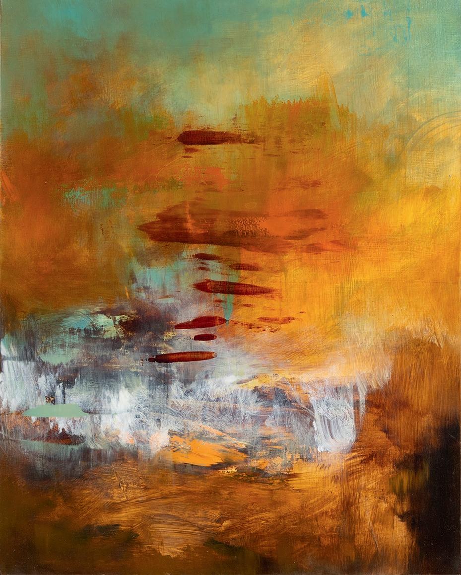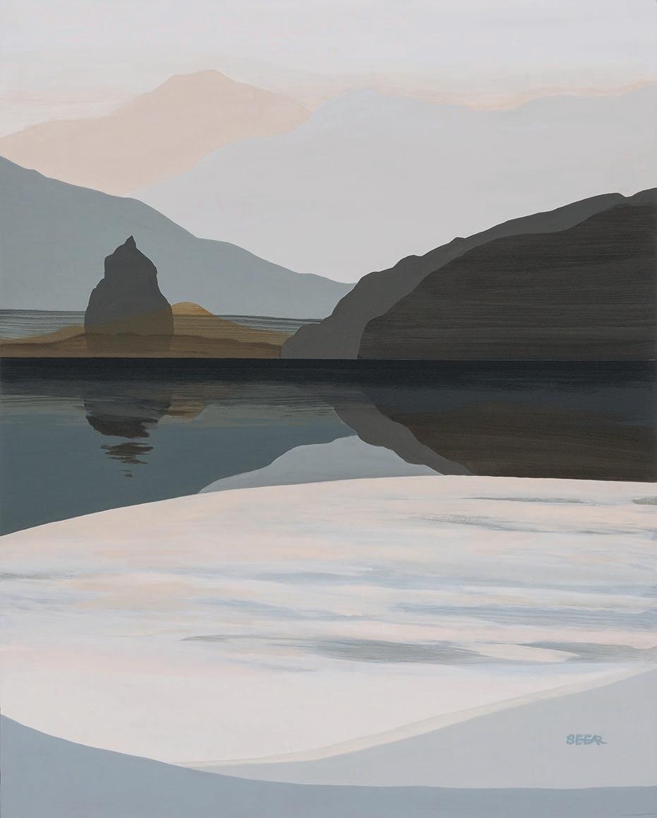Angela Seear (1979 - ) is a Vancouver-based contemporary painter whose emotive abstract landscapes and expressive compositions explore the relationship between memory, colour, light, and place, inviting viewers into scenes that feel both familiar and dreamlike. She studied design and visual arts through programs at Langara College, La Salle College, and Massey University, grounding her practice in colour theory and composition. Seear explores the notion of “home” and how our memories of places often mean more to us than the real locations. Angela strives to blur the lines between memory and real life in order to take you back to a place that you call home.