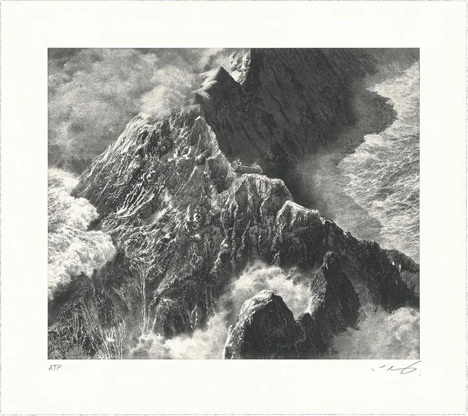 Manabu Ikeda (1973 - ) is a Japanese contemporary artist who is known for his intricately detailed, large-scale pen and acrylic ink drawings that weave together what the Artist calls “the conflict and coexistence between man and nature.” He studied design at Tokyo University of the Arts, earning both his BFA and MFA. Drawing from current events and personal memories, his works juxtapose physical and philosophical realms with deep symbolism. The Legendary Mountain features a ridge of rocky cliffs with a large ship teetering precariously overlooking the edge towards the crashing waves below. In 2023, the Audain Art Museum presented his first international solo retrospective, Manabu Ikeda: Flowers from the Wreckage, to huge acclaim. During his tenure throughout the exhibition, he created Five Windows, which is now in the Audain Art Museum Permanent Collection. Ikeda will return to the Museum this March for a week of workshops, a daily Open Studio, and an Artist Talk. Viewers flock to his work for its extraordinary craftsmanship, narrative depth, and emotional resonance.