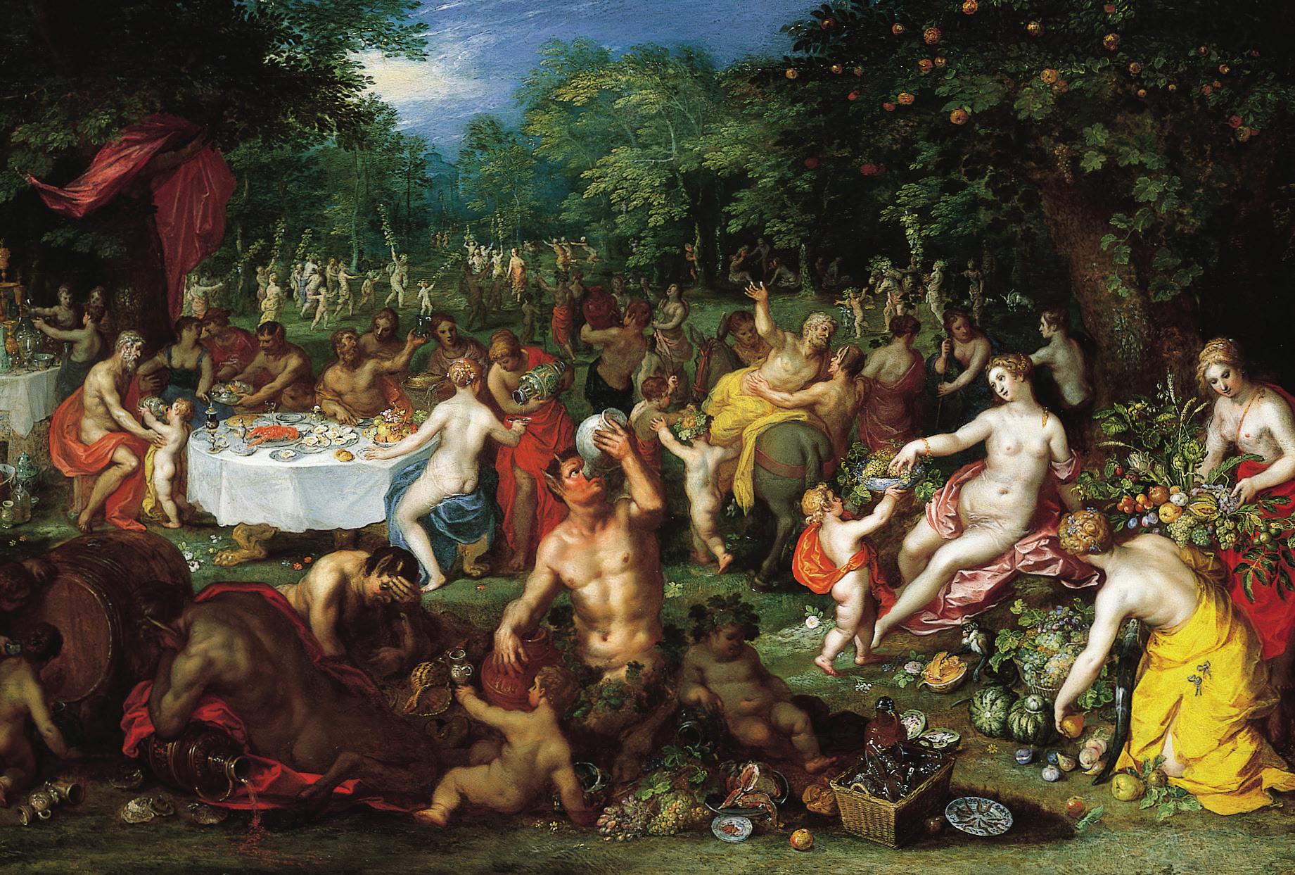 of A Bacchanal, about 1608 ‑ 1616; Oil on panel; 23 5/16 × 32 1/2 in. (59.2 × 82.6 cm.)