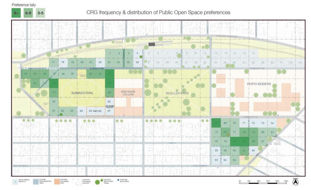 • foreground and collectively compare the diversity of knowledge, experience and viewpoints within the CRG with respect to spatial preferences and priorities such as the range and patterns of preference for building intensity (density), building height, open space provision, community facilities, connectivity and active transport routes.