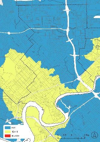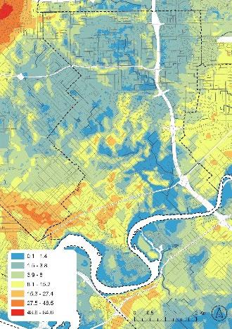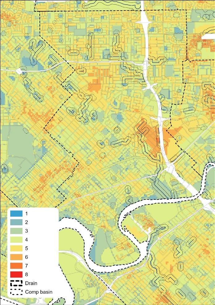 Finally, the suitability analysis maps can be used to assess drainage areas generally for their suitability to be upgraded to Living Streams, however Water Sensitive Urban Design projects are typically very site-specific, and it is therefore always necessary to conduct a place-based assessment [17]. Such an assessment should include hydrologic–hydraulic constraints not able to be embedded in the suitability model such as drain hydraulic capacity, freeboard, maintenance access, or bank stability. In settings where such geospatial data is available it should be added as an exclusion/constraint layer set in the suitability analysis.