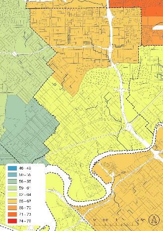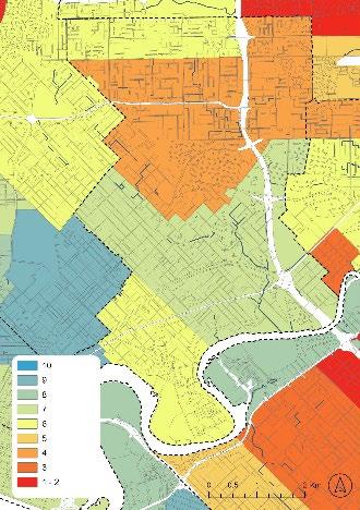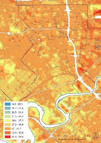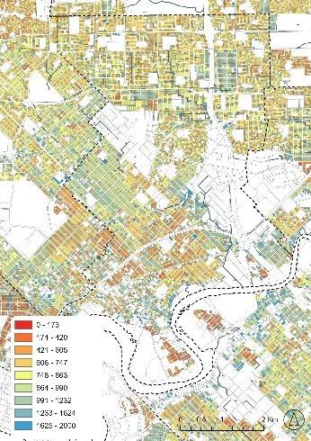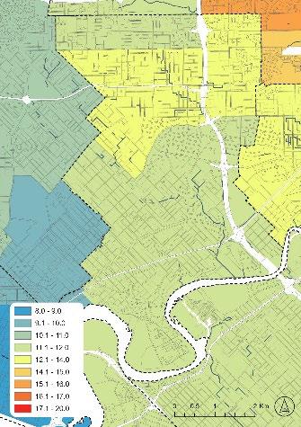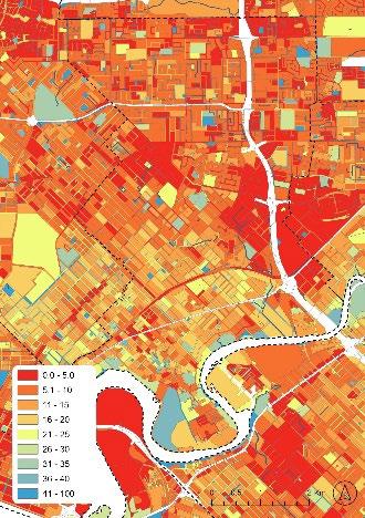 The results are discussed in detail, along with the related literature and the barriers to the possible implementation of Living Streams. In summary, the survey respondents felt that Living Streamoriented Public Open Space should be deployed in areas where the total area of Public Open Space reserves and urban forest canopy cover are low (ranked 1st and 2nd respectively) and where Land Surface Temperature is typically high (ranked 4th). These conditions are most pronounced in areas of increasing urban density (3rd in the criteria rankings) and in industrial or commercial areas (focusing just on residential areas, ranked 11th). (Figure 10).