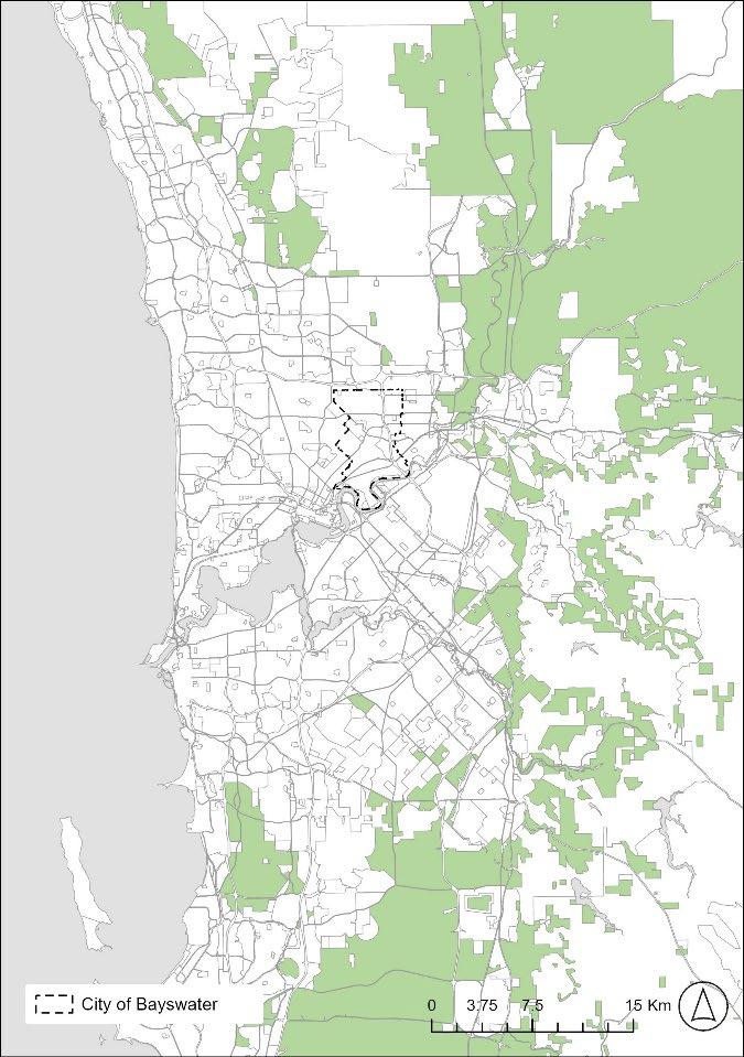 Figure 5. Case study location. (a) The case study area for this research is the middle-ring Local Government Area of Bayswater is located on Perth’s inner eastern corridor. (b) Bayswater contains numerous open drains with potential to be upgraded to Living Streams. ....................................................................................................................................... 9