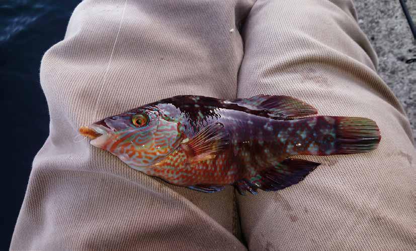In Engeland heb ik toen ook een stel lipvissen zien zwemmen met afwisselend zwarte en witte stippen op de staartwortel. Dit waren juveniele koekoekslipvissen. Een van de exemplaren vangen lukte me helaas niet. Gelukkig kreeg ik er in Noorwegen wel een op de kant. Ik wist een vrouwtje te vangen en daar was ik heel blij mee! Een mooi gekleurd mannetje van deze soort staat nog wel op de wenslijst. Ze kunnen prachtig blauw met fel oranje worden! Bijzonder is dat van deze soort de vrouwtjes van geslacht kunnen veranderen. Wanneer een dominant mannetje wegvalt kan een vrouwtje in zeven maanden transformeren naar een mannetje en zijn plek overnemen. Het zijn echte rovers en zijn goed op kunstaas te vangen.