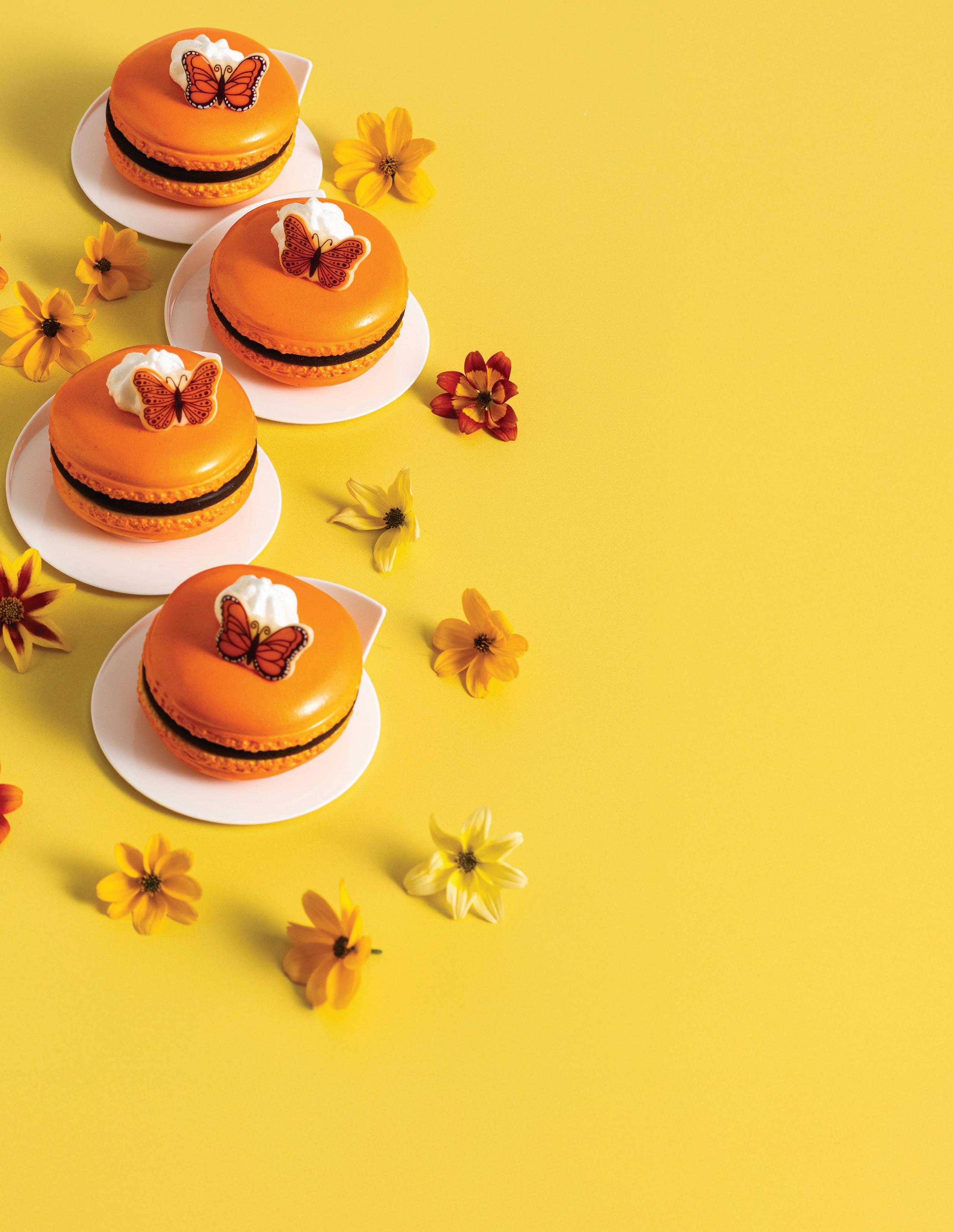 Create a flutter of spring with enchanting PCB Creation designs and Arte Piatto amenities. Utilize Silikomart Mold (5920010451), Dreidoppel Mandarin Compound (767210) and Orchid Bletia 65% Dark Couverture (540165) to create trompe l’oeil macarons for your Spring buffets.