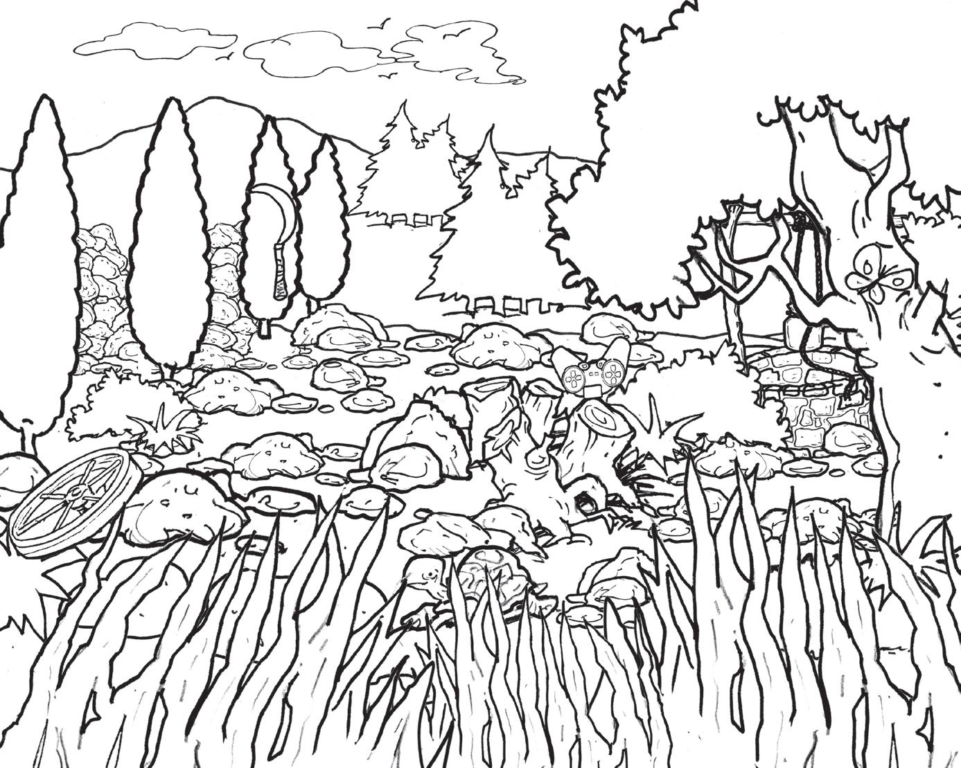 • ¿Puedes encontrar el pozo? Encuentra también una tortuga, una mariposa, la rueda de un carro, una hoz, y el mando de un videojuego.