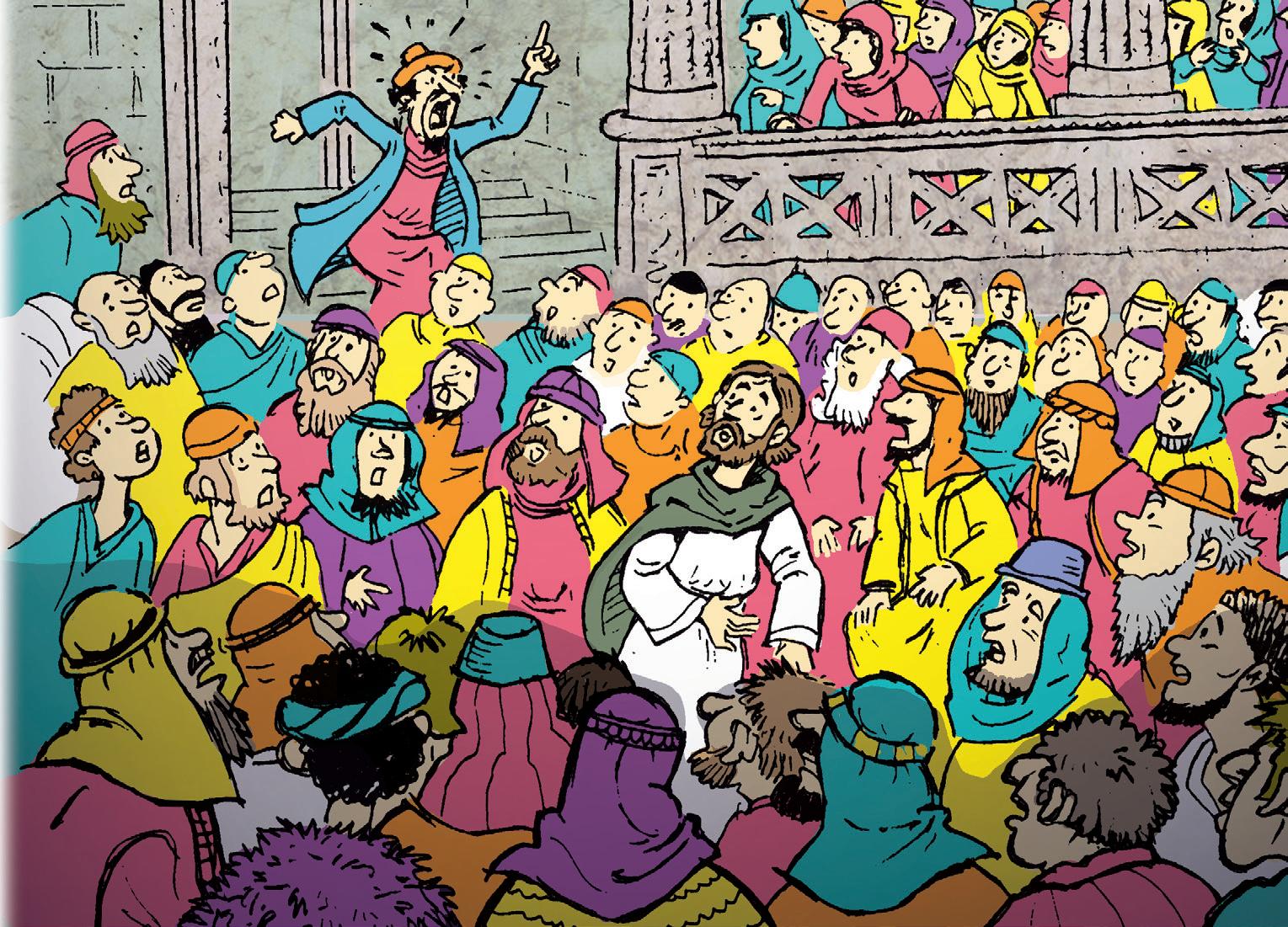 ¿Qué haría Jesús? Todos lo estaban mirando. Especialmente los rabinos y los fariseos con cara de enfado. ¿Cómo se atrevían a romper el techo de una casa que no era la suya? ¿Cómo habían sido tan maleducados que se atrevían a interrumpir a Jesús delante de las personas más importantes de los pueblos cercanos? Realmente ese hombre se merecía su enfermedad, pensaban ellos. ¡Mira que malo era! Si había venido a que Jesús lo curara ya se podía marchar. Ellos pensaban que Jesús solo sanaba a las buenas personas.