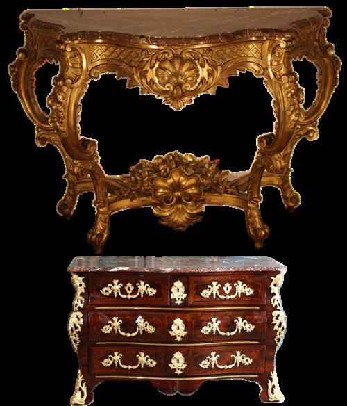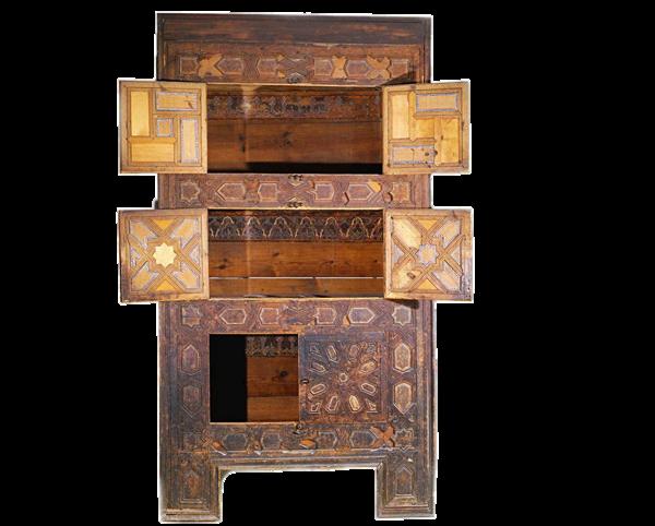 Maderas locales complementadas con mármol, piedra, bronce, marfil, chapas de materiales preciosos