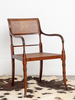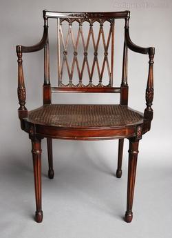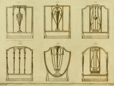 Destaca su amplia curva en el respaldo con acanaladuras radiales.Los respaldos laterales tienen una influencia neoclásica inglesa