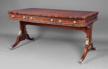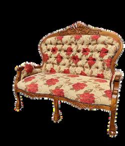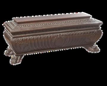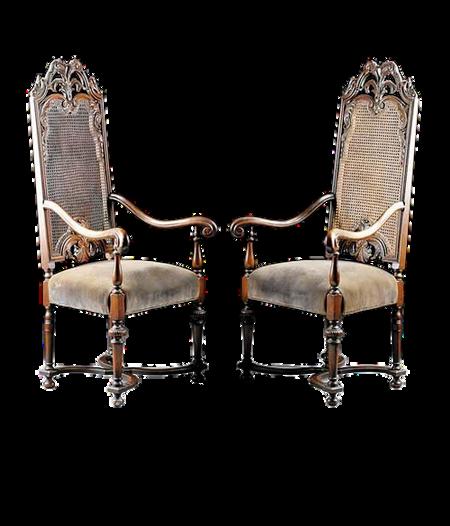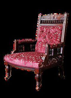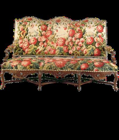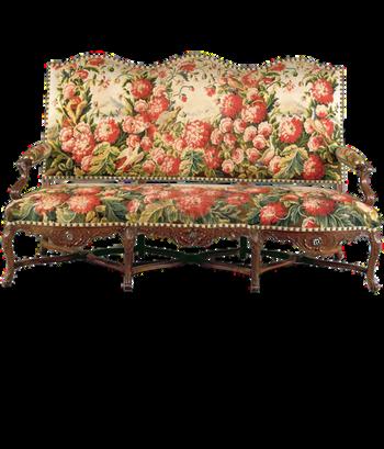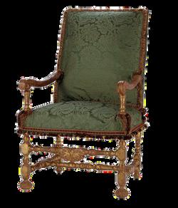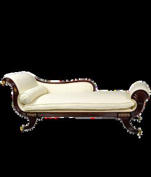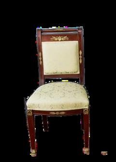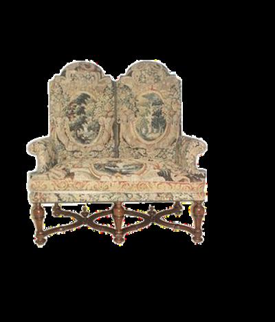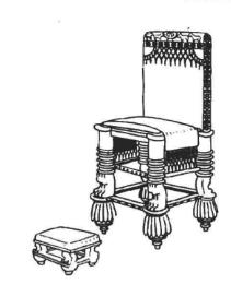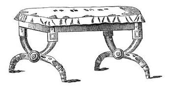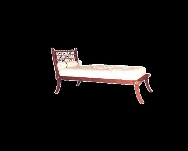 Acompañados de un escabel para los pies, cuyas patas también exhibían garras de león. Algunos incluían incrustaciones de porcelana y adornos metálicos en los travesaños