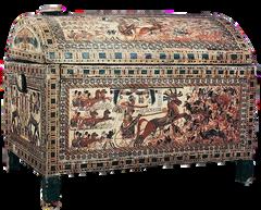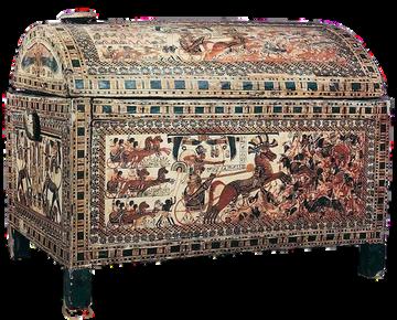 Muebles de élite: decorados con formas geométricas, colores vivos, tallados o dibujos. Se empleaban maderas finas, chapas metálicas y marfil para incrementar su valor y simbolismo.