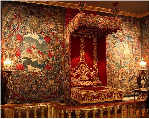 Caoba maciza, bronce dorado al fuego, mármol, telas de gran densidad en tonos fuertes