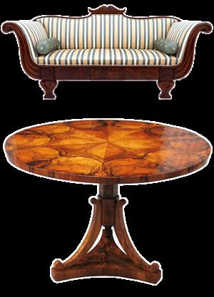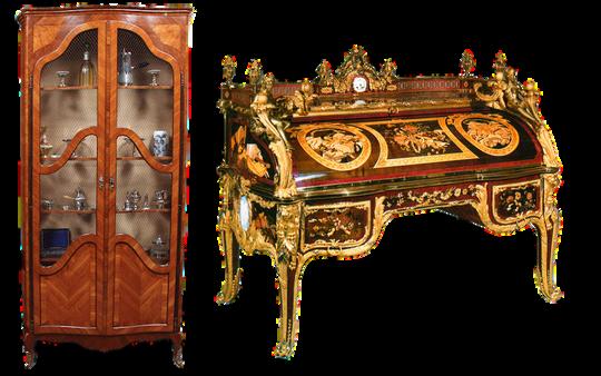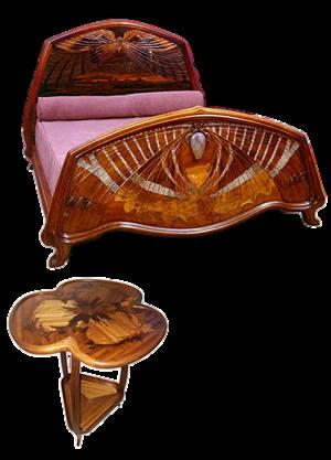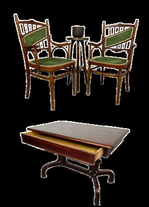 Muebles robustos, en roble teñido oscuro, con pocos adornos metálicos Posteriormente se incorporaron influencias clásicas y, desde 1925, el Art Déco y las corrientes europeas.