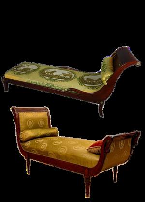 sofás meridiennes, chaises-longues y butacas en forma de góndola.