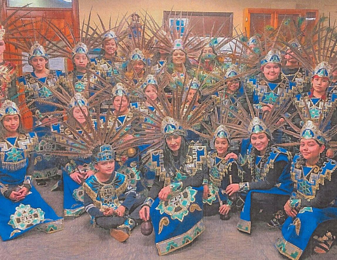 Danza Azteca Tonantzin De San Pio X is an Auroran based dance group that specializes in the indigenous dance styles of Mexico. The group operates out of St. Pius X Parish. One of the group leaders is Martha Prado. Prado is originally from Guadalajara, Mexico and has been in the United States since 1990. She has been dancing since she was 5 years old and has been teaching dance for decades. Prado shared with the museum staff, “The Aztec dance that comes from pre-Hispanic times has been rescued by small groups that consider themselves descendants of the Aztec lineage. . . Each movement in the dance choreography has a specific meaning. Squats and serpentine movements represent fertility, the steps settled on the ground the earth and the sowing, the air and the spirit turn them, the forward and backward steps the fire and the zigzagging steps the water. . . The dance is performed for recreational, social, religious and artistic reasons. . . I see dancing as a way to connect generations. I would really like to see it taught and passed on to the youth.”