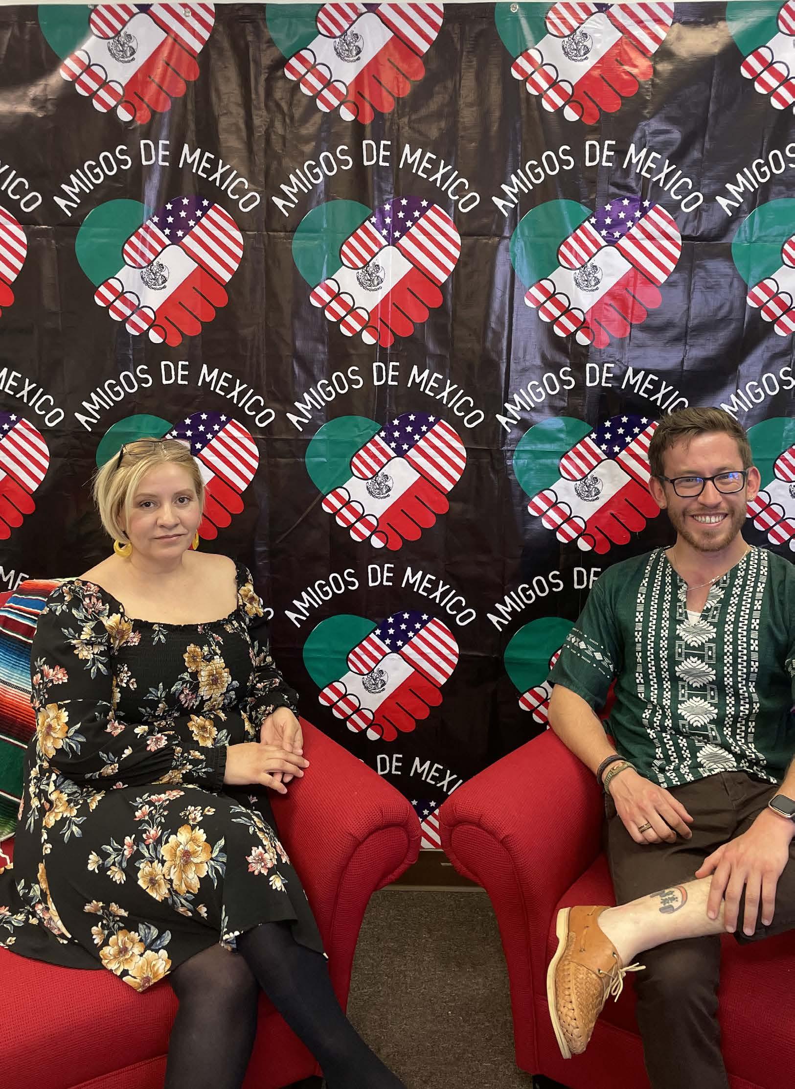Amigos de México sirve a la comunidad de Aurora en una variedad de formas. Ofrecen servicios y organizan eventos para apoyar a la comunidad mexicana y educar más a las personas sobre la cultura mexicana. El grupo fue fundado por cinco mujeres mexicanas en 2019 aquí en Aurora. Una de las fundadoras, Susana Martínez, explicó al personal del museo: “Nuestro enfoque principal está en cuatro áreas para ayudar a las comunidades hispanas que han emigrado aquí. Esas cuatro áreas son la salud, la cultura, la economía y la educación. . . Brindamos clases para que los inmigrantes puedan obtener su GED y aprender inglés. Promovemos muchos días festivos mexicanos y tratamos de brindar estas experiencias culturales a la gente de Aurora. También tratamos de apoyar a los grupos locales de danza y música que se enfocan en la cultura mexicana.” En la foto, una de las fundadoras, Mirna Mendoza, y un miembro de la organización, Adam Barrientos.