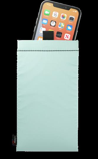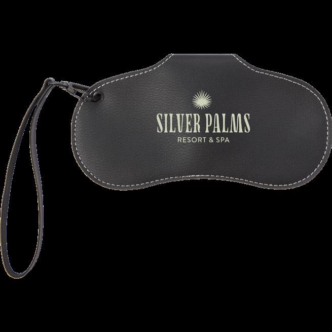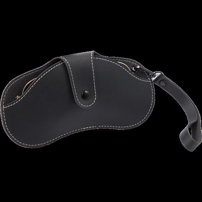 Made with recycled materials, featuring a snap closure to secure sunglasses and a wrist lanyard for easy carry.