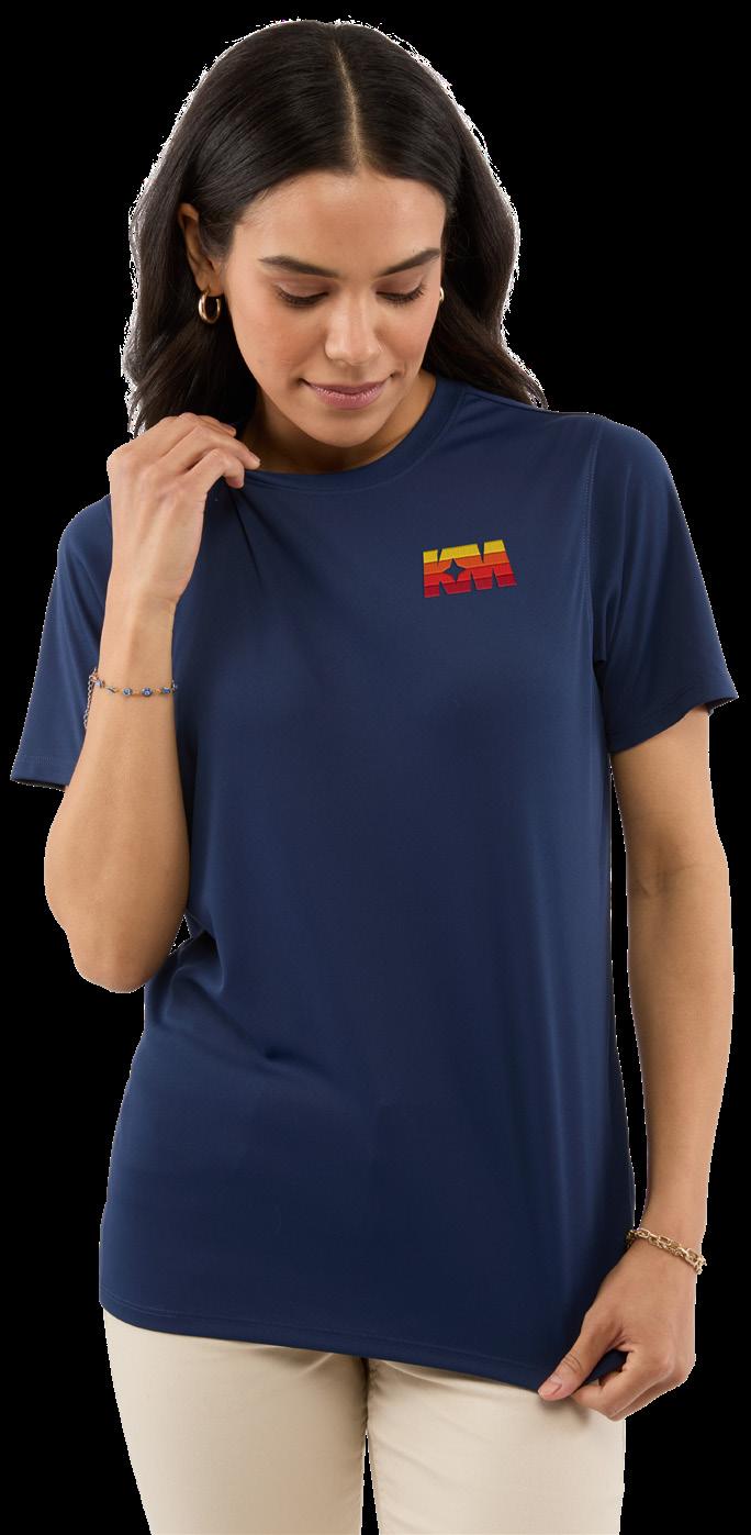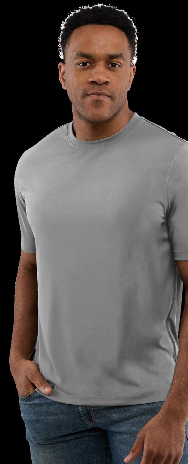 Smooth-knit tee with stretch, moisture-wicking performance, UPF 50+ protection, and snag-resistant fabric.