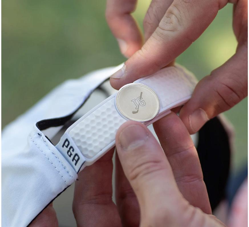 Polymer clip slides easily onto most adjustable hat straps, keeping your ball marker within reach.