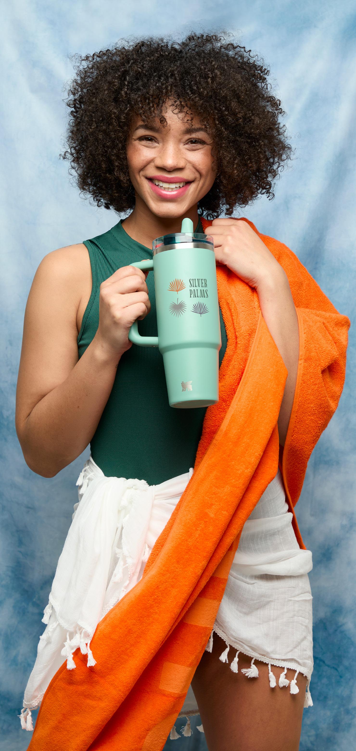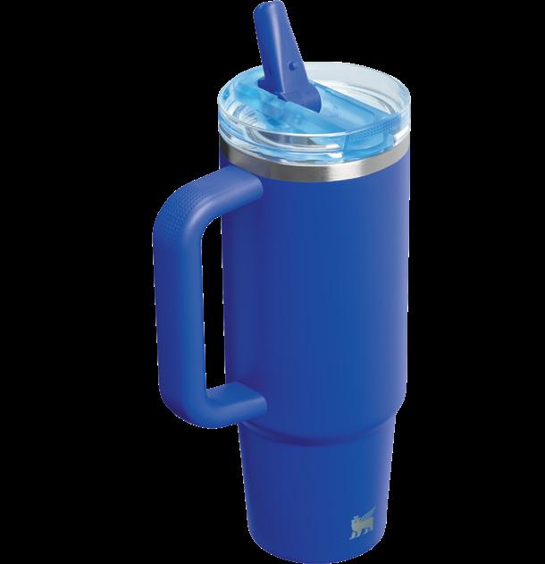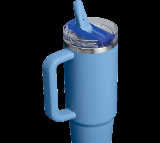 Leakproof flip straw with comfort-grip handle and longlasting cold retention.