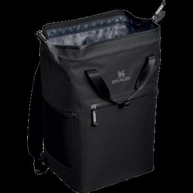 Premium backpack cooler with a hinged “doctor’s bag” top opening and padded shoulder straps.